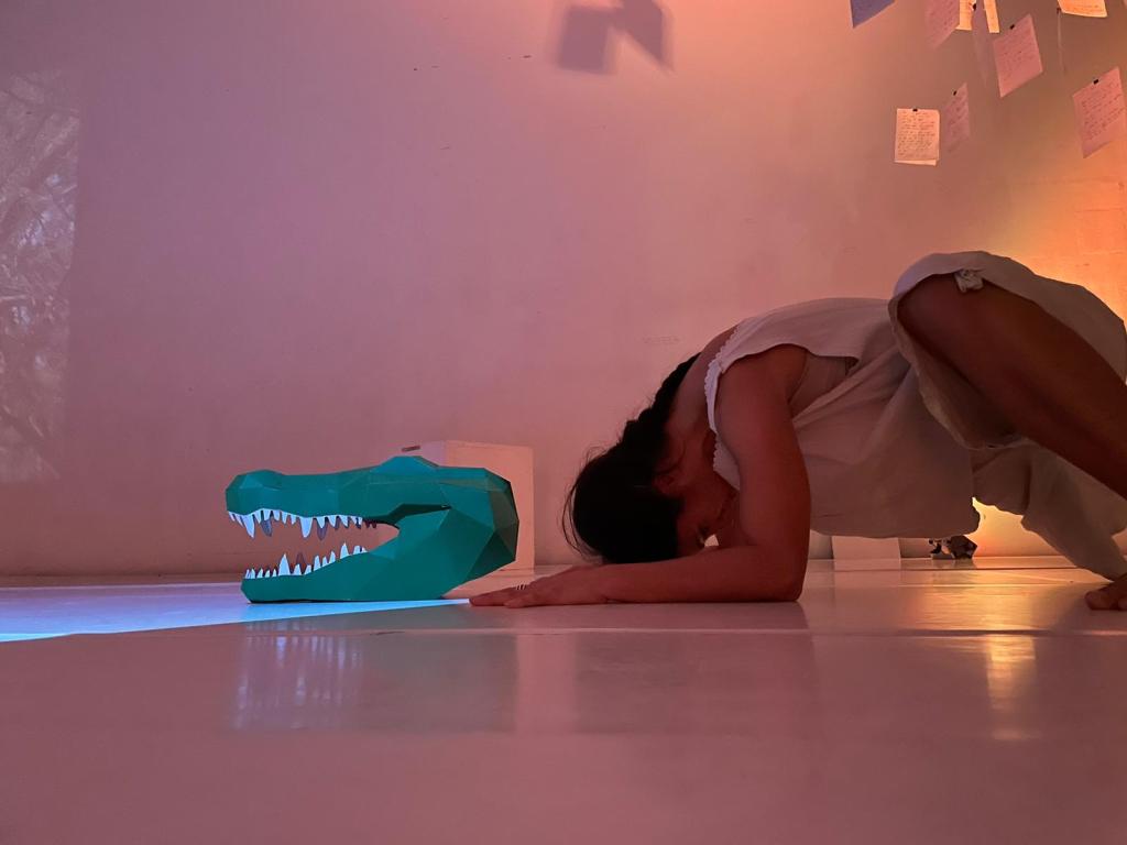 To B.E.” is a performative work that explores the multifaceted nature of the artists’ relationship with mothering. Drawing from her experiences of pregnancy, childbirth, and motherhood, the piece delves into the complexities of fearing the passage of time, desiring to be fully present in the moment, and the process of capturing, honoring, and experiencing time itself. The performance explores the intricate tapestry of caregiving, challenging the stigmas that western society often attaches to traditional, patriarchal notions of motherhood. Through a set score of movements and emotive gestures, the dancer embodies the complex emotions that arise when a woman transitions into the role of mother. The choreography portrays the amplification of ambivalence – a push and pull between societal expectations and personal desires. The performer weaves through space and inside states mirroring the internal struggle many women face in their new maternal role.